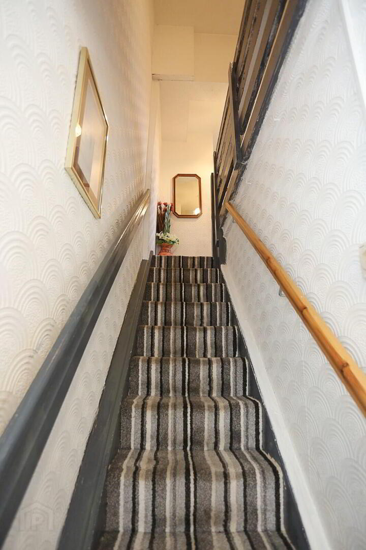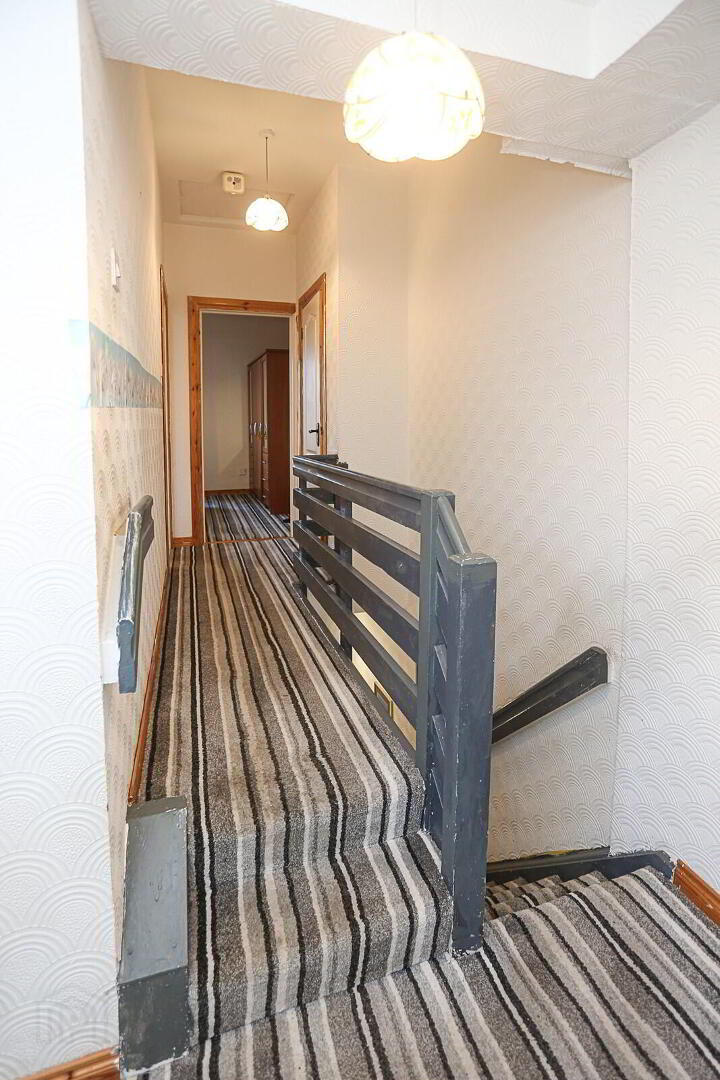1st floor: Stair and landing, carpeted, hotpress, separate linen closet.