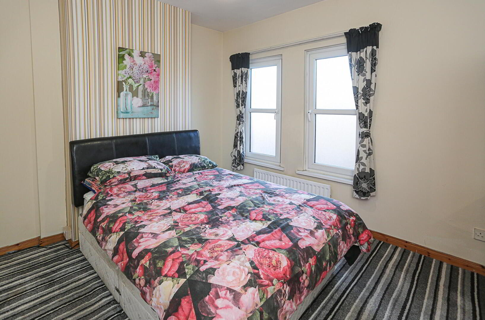 Bedroom 2: 11’ 2” x 6’ 11” Carpeted, single panel radiator.