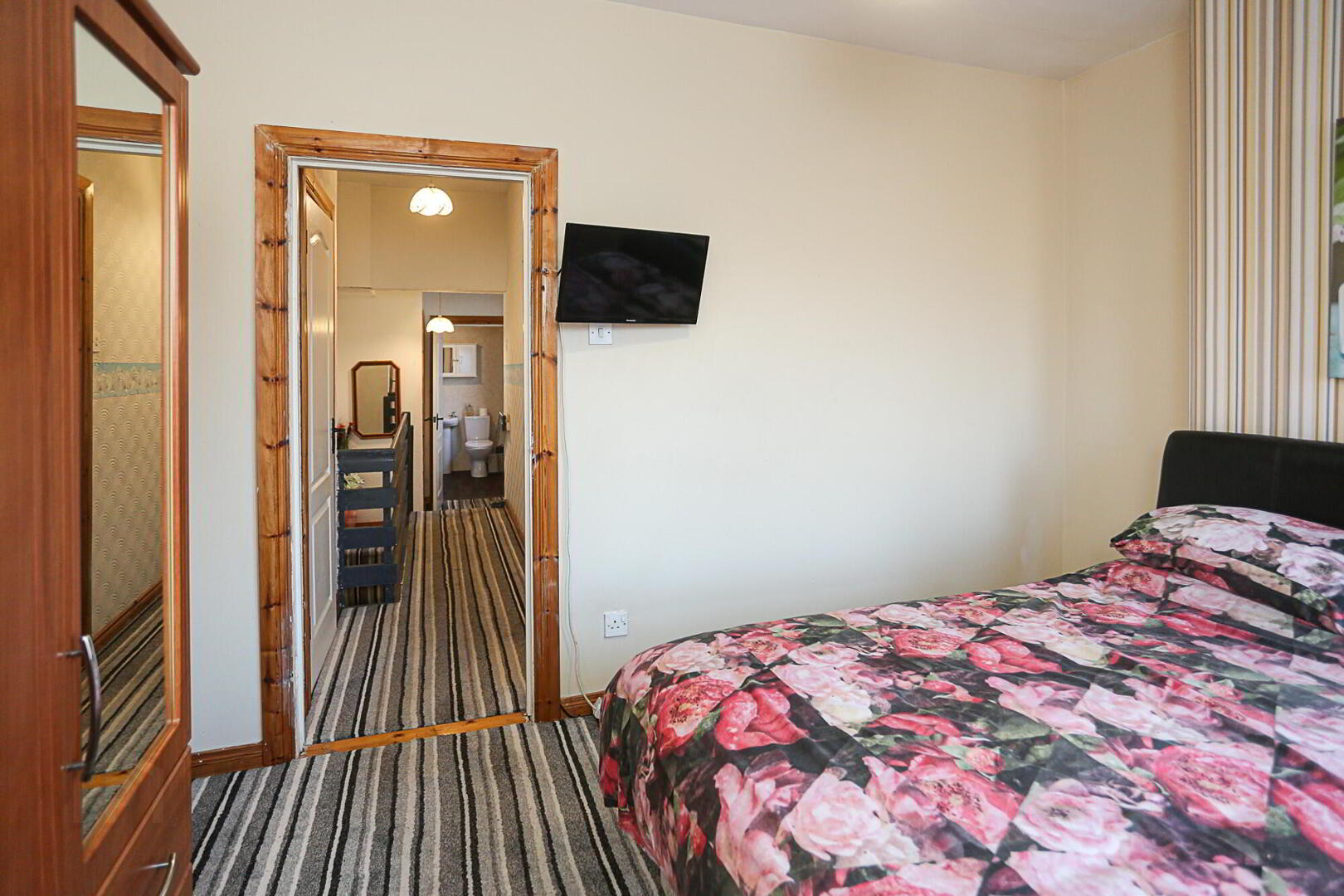 Through Lounge: 23’ 4” x 9’ 2” Focal Point fireplace, carpeting, 2 double panel radiators, Cloaks understairs.
