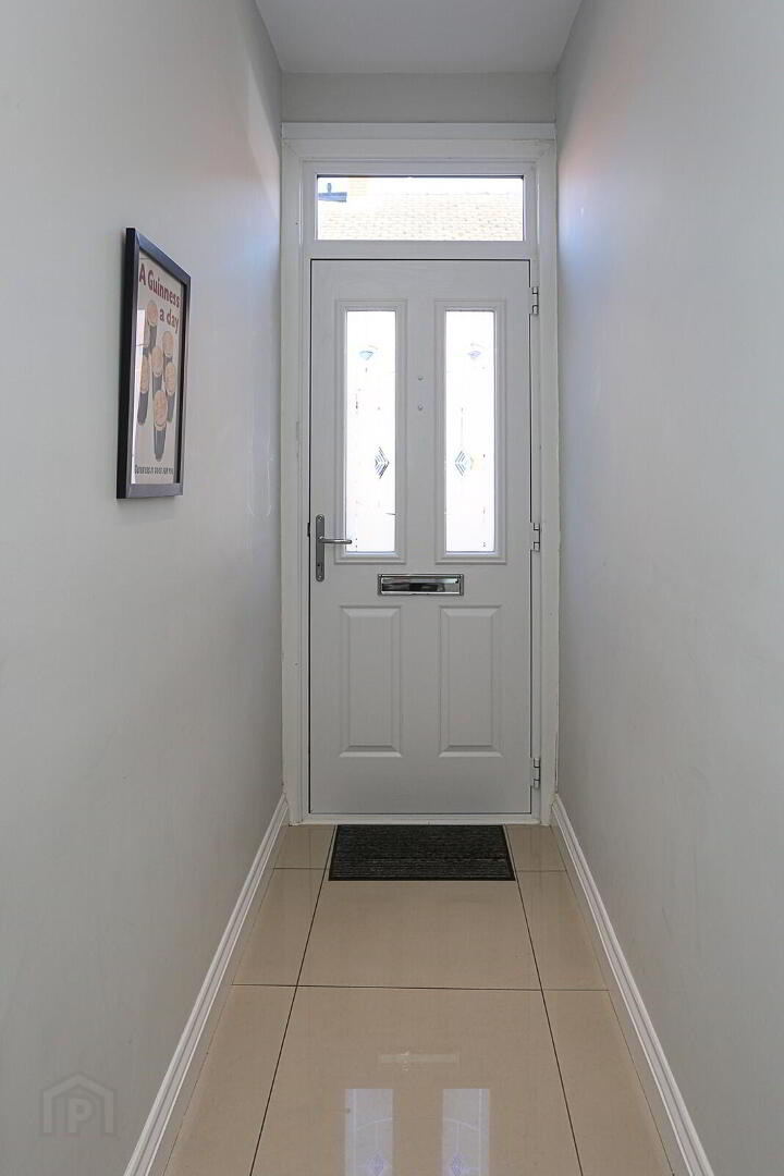 Entrance hallway: PVC front door, Gloss tiled flooring, radiator.